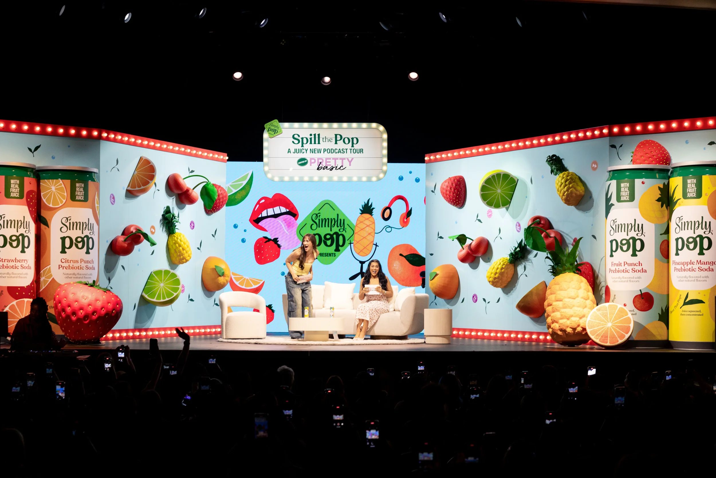 Working with Coca-Cola on the launch of their new prebiotic soda, Simply Pop, we teamed up with the Podcast Pretty Basic to launch a national tour. We worked with each venue to create custom graphics, stage design, photo moments, and plenty of giveaways. We also created a Simply Pop truck that toured the country at music festivals, college campuses, and plazas to give people the chance to sample the sodas and create fun content promoting the brand.